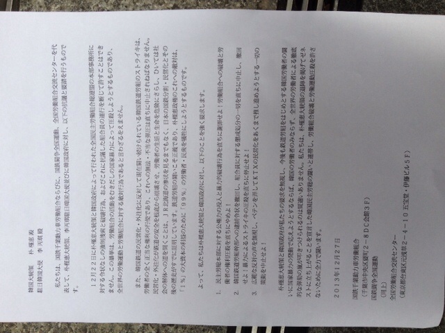 ただ今、韓国大使館前で動労千葉呼びかけの抗議行動中です!