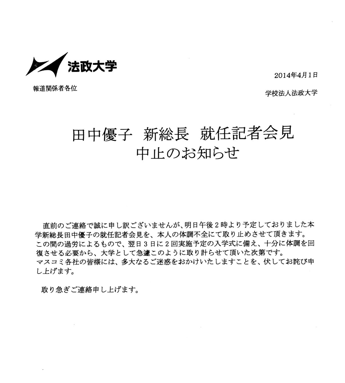 ↑申し込んだ各記者に法大から送られてきた手紙です。