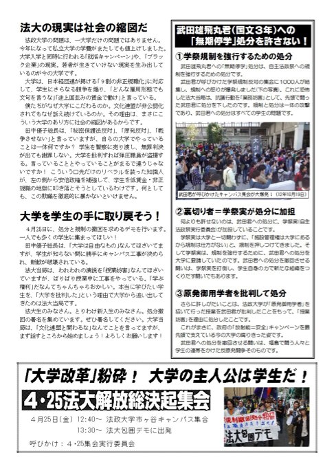 4・25法大解放総決起集会へ!!