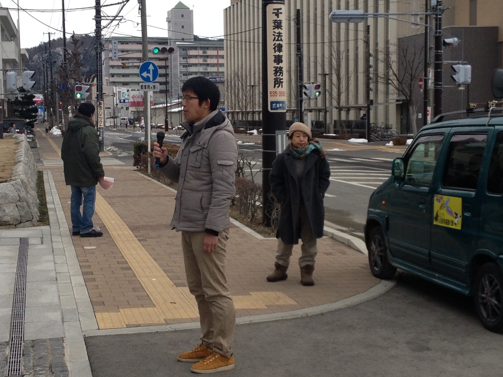 椎名さんも含めそのままA君が拘留されている福島警察署と福島地方裁判所の周りを宣伝カーで激励行動。「釈放するまで毎日来るぞ!」と宣言してきました。