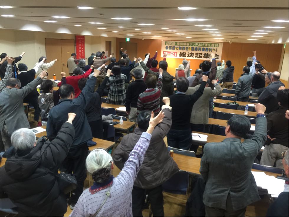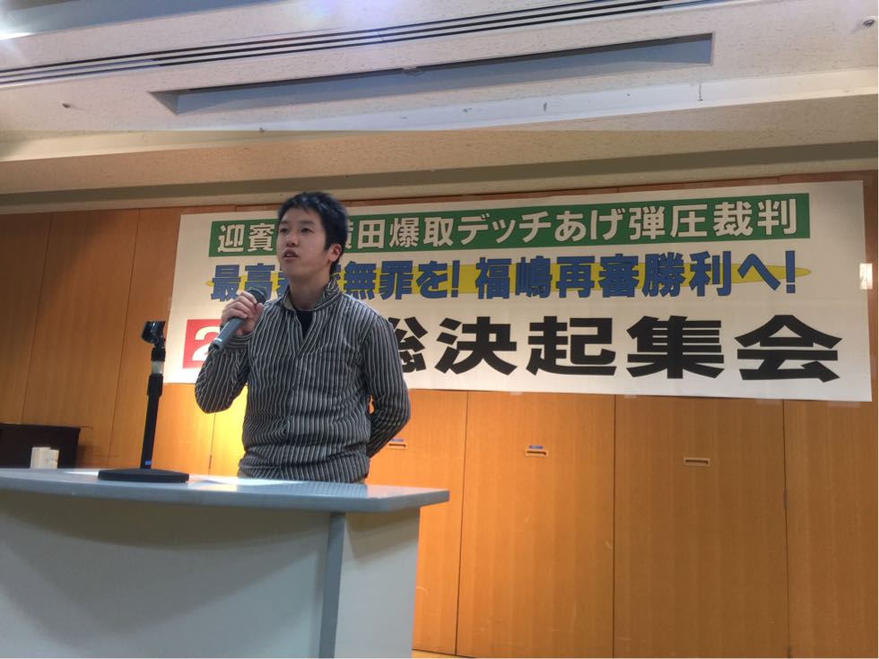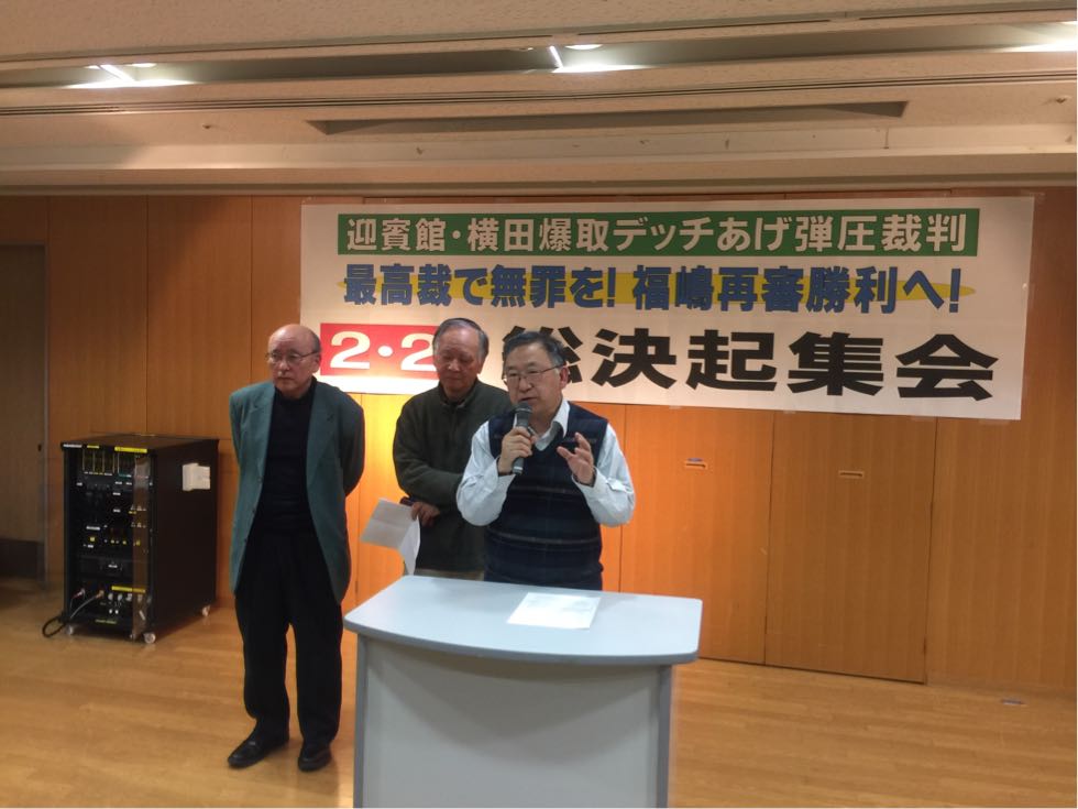 爆取3同志(左から須賀武敏さん、十亀弘史さん、板垣宏さん)アピール