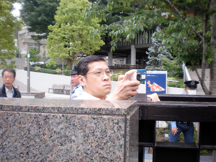 「ふざけるな!」記事も最後としましょう。弾圧専門に雇われ、我々の映像を記録しているふざけた奴です。今度はどこのどいつだ! 詳細がわかりましたらご一報を。