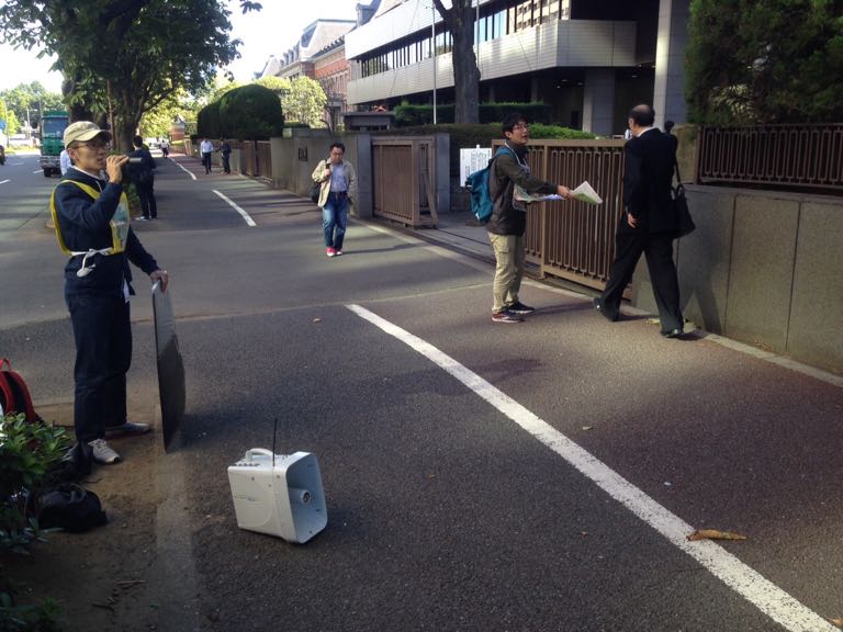 裁判所前朝は、全学連と共に闘う同志が10人決起。ビラは約560まけ、署名は1筆とれました。