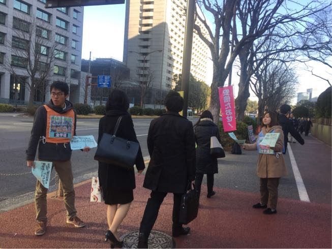 朝から裁判所前でビラまきやってます