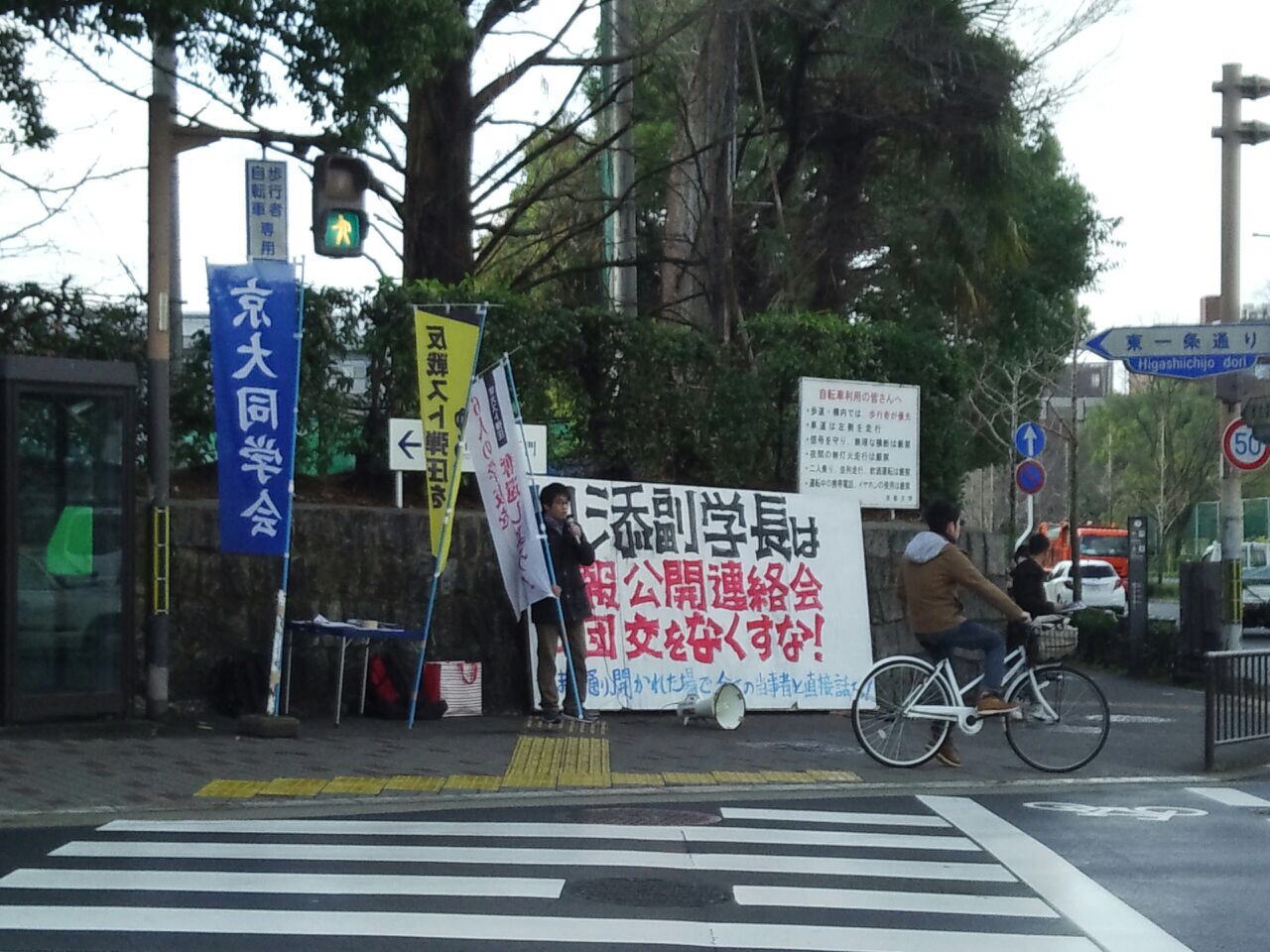 警視庁公安部がこの数日間京都入りしていることからもわかるように、今回の攻防は京大当局や京都地裁・府警のレベルを超えて、国家権力=安倍政権そのものとの激突となっています。このかんのデモや情宣できりひらいてきた情勢、何より京大生の決起に敵は追いつめられ、グラグラになっています。PRカーも毎日各署を回り、獄中に声を届けています。起訴は絶対に粉砕できる!残る3日間団結をかため、拡げ、意気高く闘いましょう!