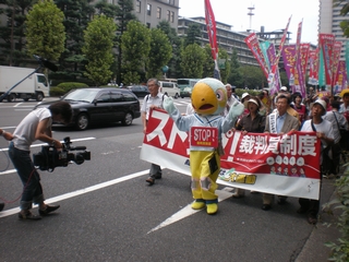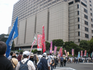 初めての裁判員裁判が東京地裁で開かれた8月2日、「裁判員制度はいらない!大運動」が呼びかけた霞ヶ関デモに参加しました。法大裁判弁護団など多くの弁護士、労働者とともに東京地裁に肉薄する行動をやりぬきました。