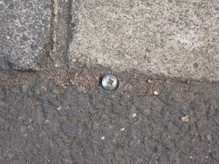 職員・菅野が「3センチ敷地内に入った」という主張の根拠としてもちだしてきたのがこの「境界を示す鋲」。