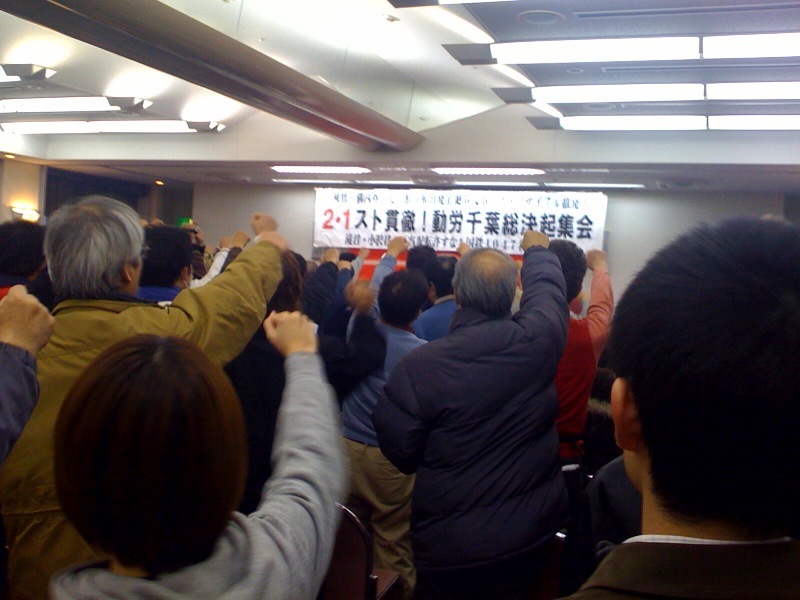 今日、われわれは新たな闘いに突入する。この闘いは第二次分割・民営化反対闘争だ。情勢は回りめぐって、再び渾身の力をふりしぼって立ち上がるときがきた。この闘いは一度二度のストライキでは終わらない数年がかりの闘争になる。