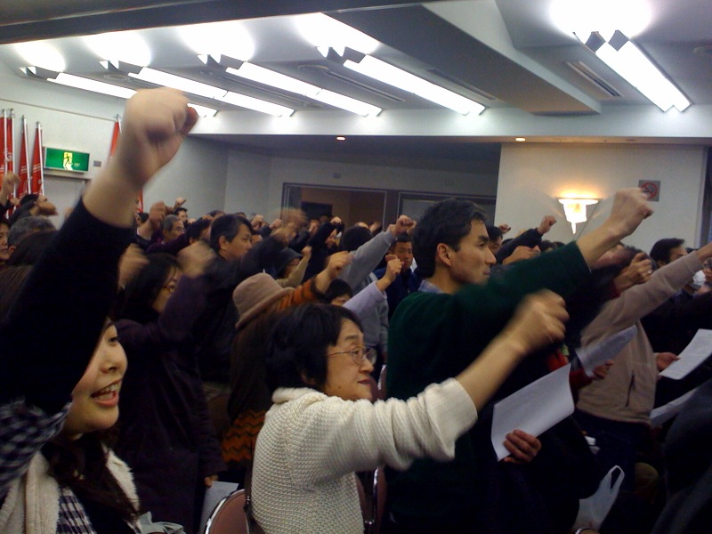 日本の労働運動の歴史は、60年安保闘争が1957年国鉄新潟闘争から始まり、70年安保沖縄闘争が1967年国鉄5万人反合闘争やマル生粉砕闘争と、沖縄・学生の怒りが結合して燃え上がったように、国鉄における闘いが常にその中心に存在していた。われわれはその誇りにかけて立ち上がる。怒りの声は社会の隅々まで満ちている。だがその声は未だ団結した力とはなっていない。この闘いはその怒りの声をひとつに結集する闘いだ。国鉄分割・民営化攻撃との25年間の攻防の決着を求める闘いだ。