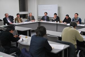 緊急の呼びかけにもかかわらず、大手マスコミが集まった。4年間の法大弾圧への関心がうかがえる。
