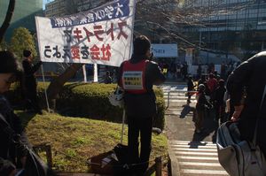 「(拡声器で叫ぶなどして)大学職員による受験生の入構及び試験場への誘導を困難ならしめる」(被疑事実)と言っているが、事実は全く違う。試験案内場とはかなり離れている。整然と受験生は入構している。