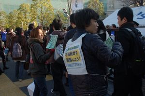 当日は、予備校やサークルなどもビラ撒きをしていた。結局、大学を批判するビラや演説は許さないという言論弾圧でしかない!