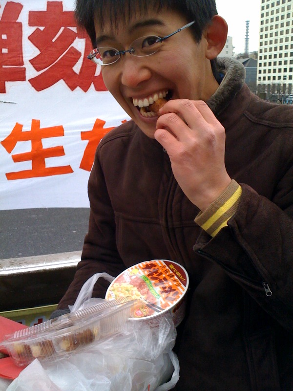 齋藤君が飯田橋駅前で演説をしていたら、女性が近づいてきて「ビラを10枚下さい」と言ってきて、差し入れまで頂きました。ありがとうございます。
