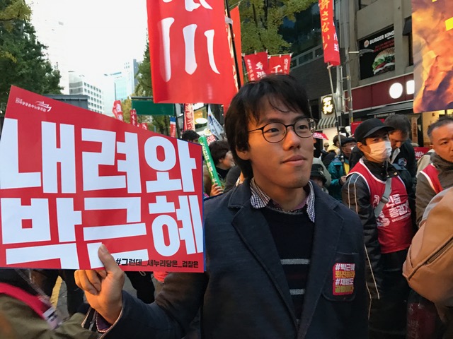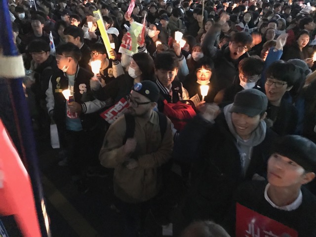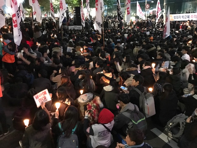 パククネ退陣を求める青年・学生のデモがかなり激しく闘われています!