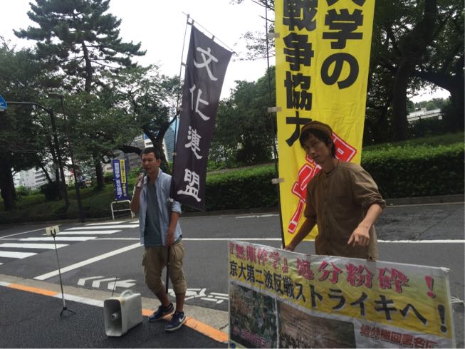 さらに、斎藤郁真全学連委員長から「学生や教職員のみなさん!軍事研究や経済的徴兵制など、今まさに私たちの『日常』が戦争の道具になろうとしています。本日のデモを出発点に、ともに大学から戦争を止めるために立ち上がろう!10月3日の京大集会に結集しよう!」とアピールが発せられました。