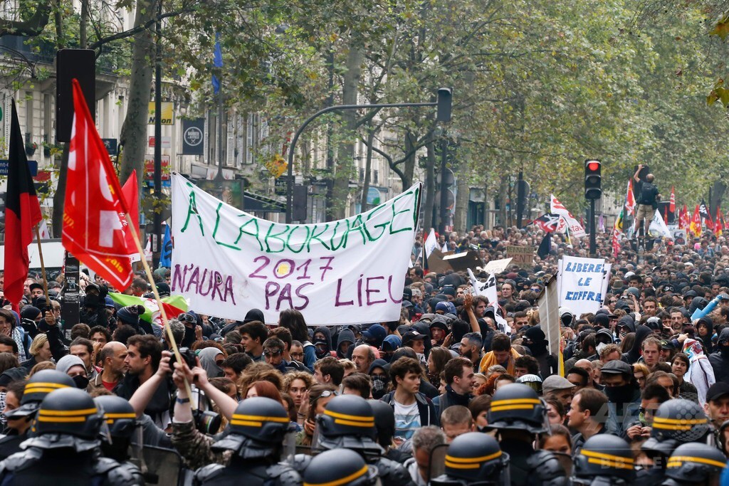 【9月16日 AFP】フランス各地で15日、 フランソワ・オランド(Francois Holland)大統領の社会党政権が進める労働法改革に抗議する大規模デモが行われ、一部が警官隊と衝突した。