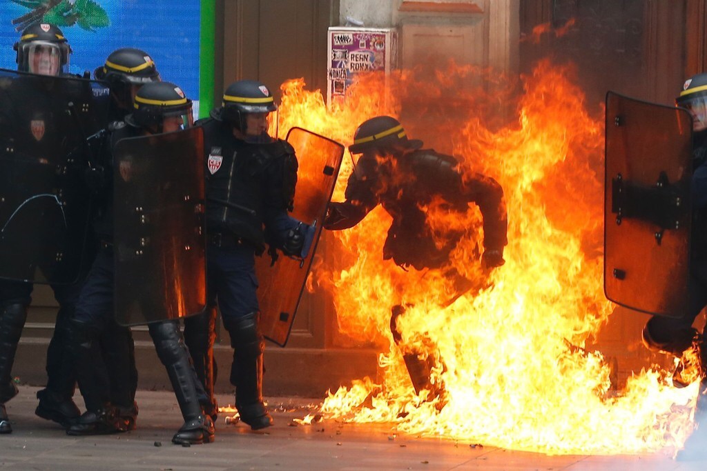 首都パリでは、デモ隊との衝突で機動隊が催涙ガスや閃光発音筒を使用。デモ参加者4人、警官15人が負傷した。負傷した警官のうち2人は火炎瓶によるやけどだという。また西部ナントでもデモ隊が暴徒化し、警察が放水砲と催涙ガスで鎮圧に当たった。