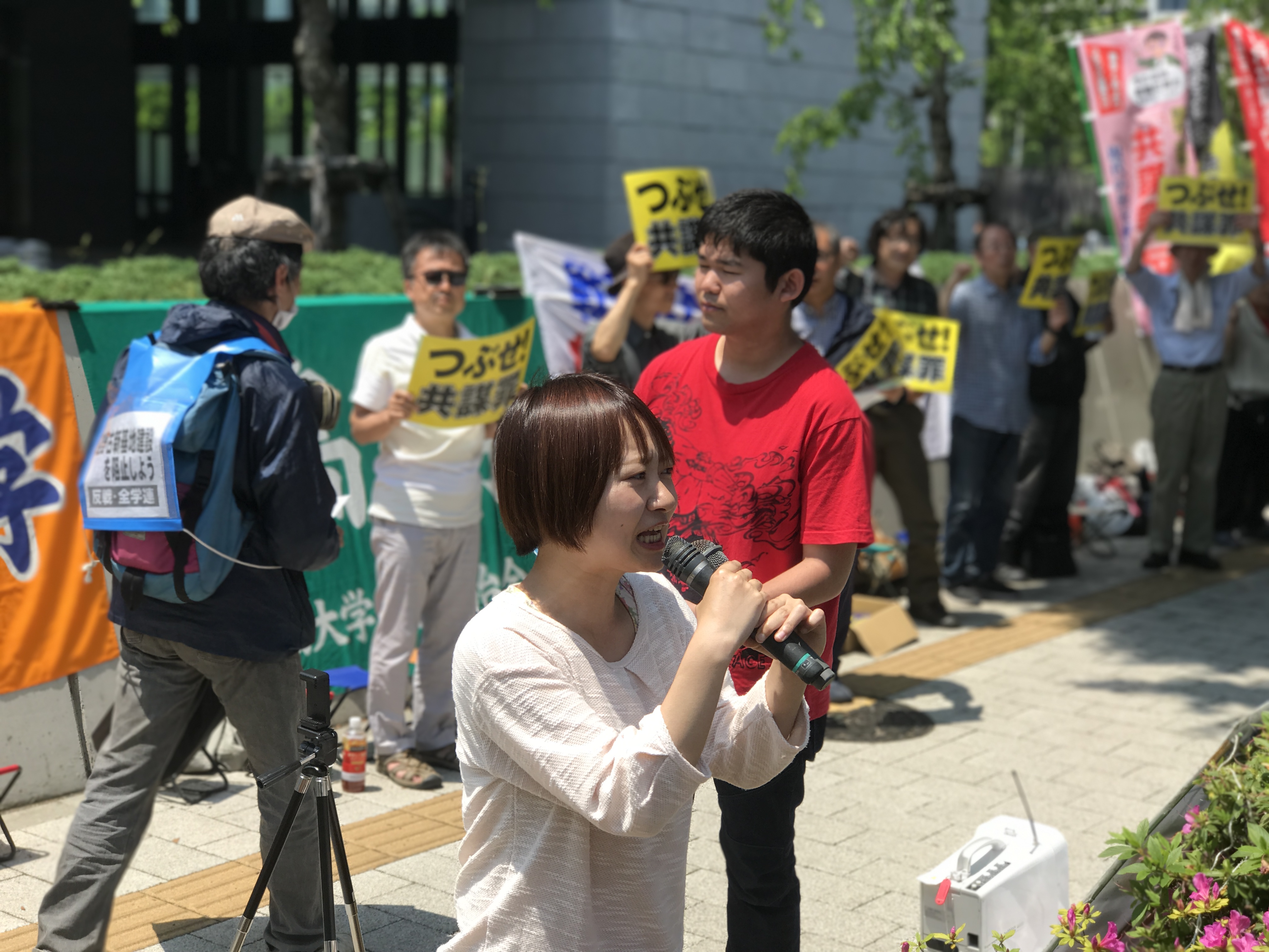 特に今日は京大生が応援に駆け付け、キャンパス中央でのアジテーションやクラスに分け入っての応援演説など積極的に参加してもらえた事が重要でした。京大生の登場に対して、キャンパスからは女性の学生が立ち止まって聞くなど、多くの注目を集めています。