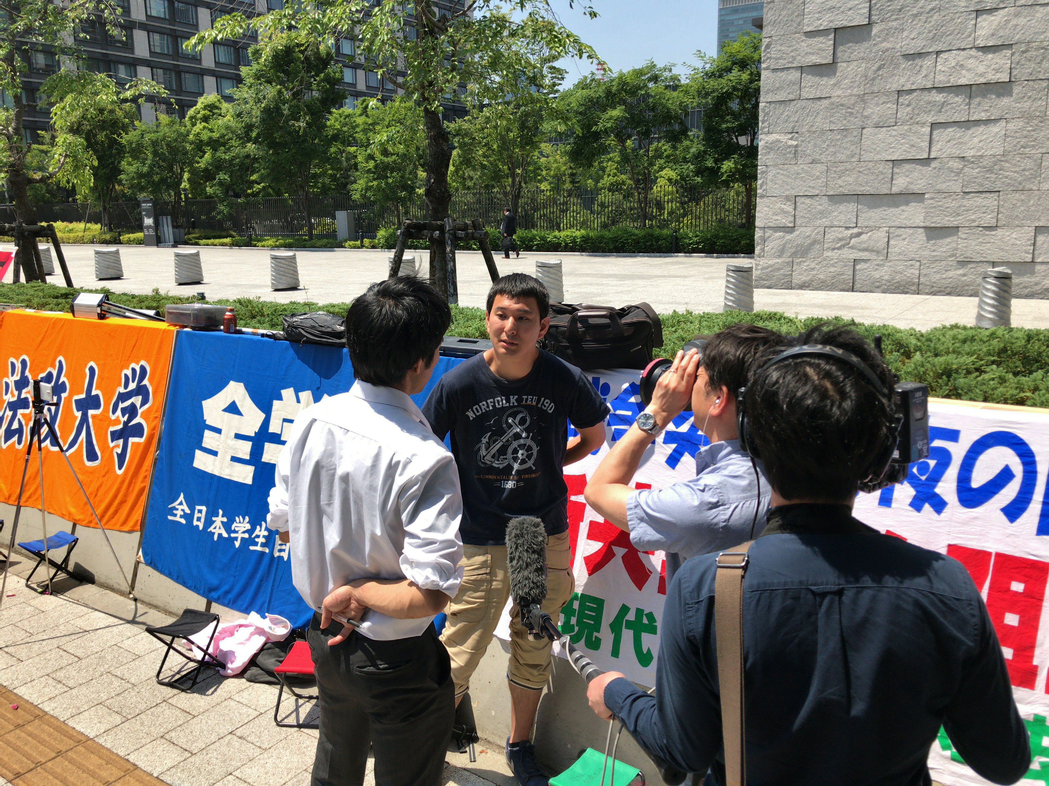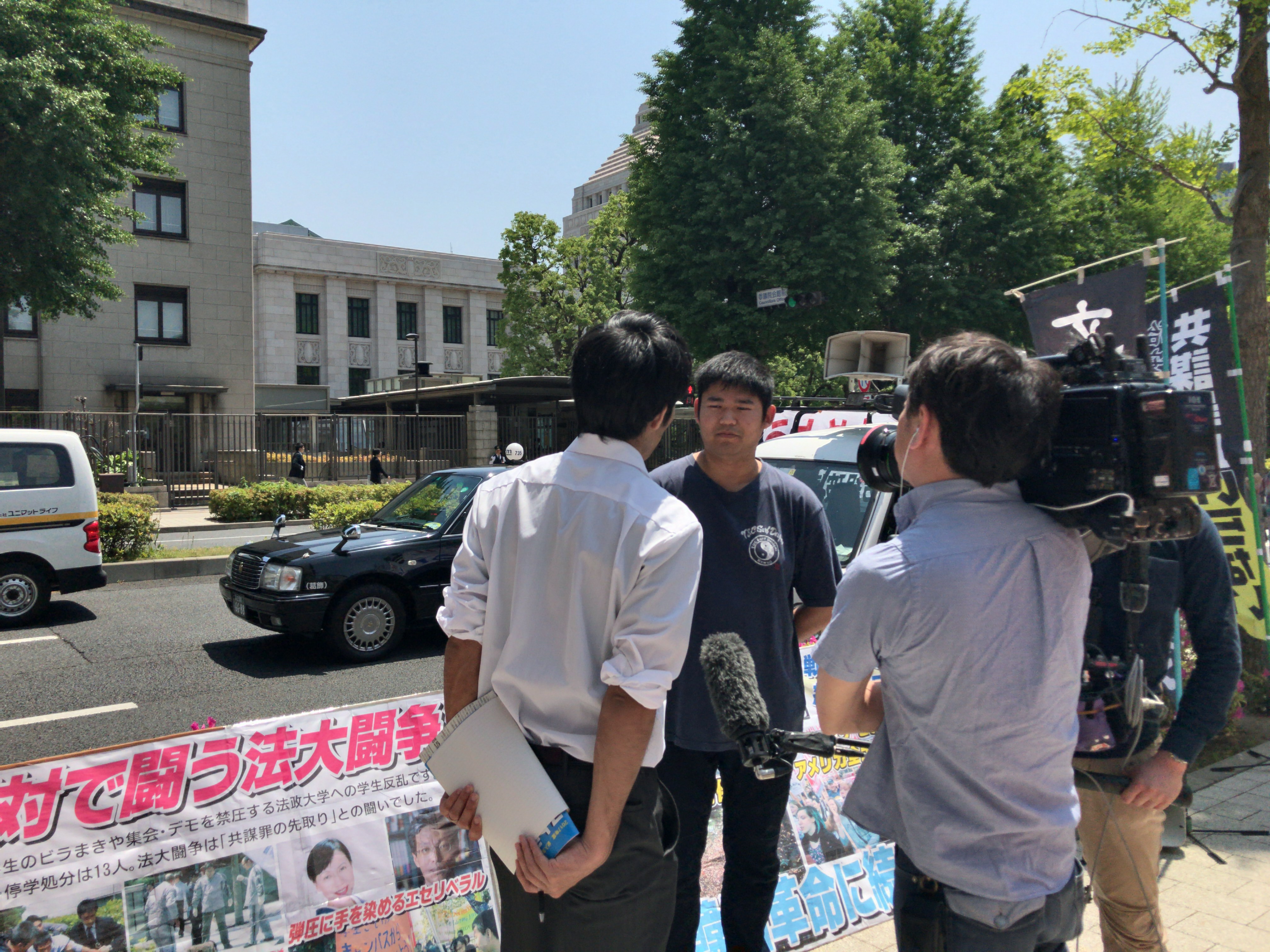 キャンパスは5・15の集会で明らかでしたが、職員や教授は全く出てくることができません。今日の宣伝・扇動のアジテーションや展開でも、こちらはキャンパス中央で堂々と登場し、多くの学生が立ち止まって聞いていました。